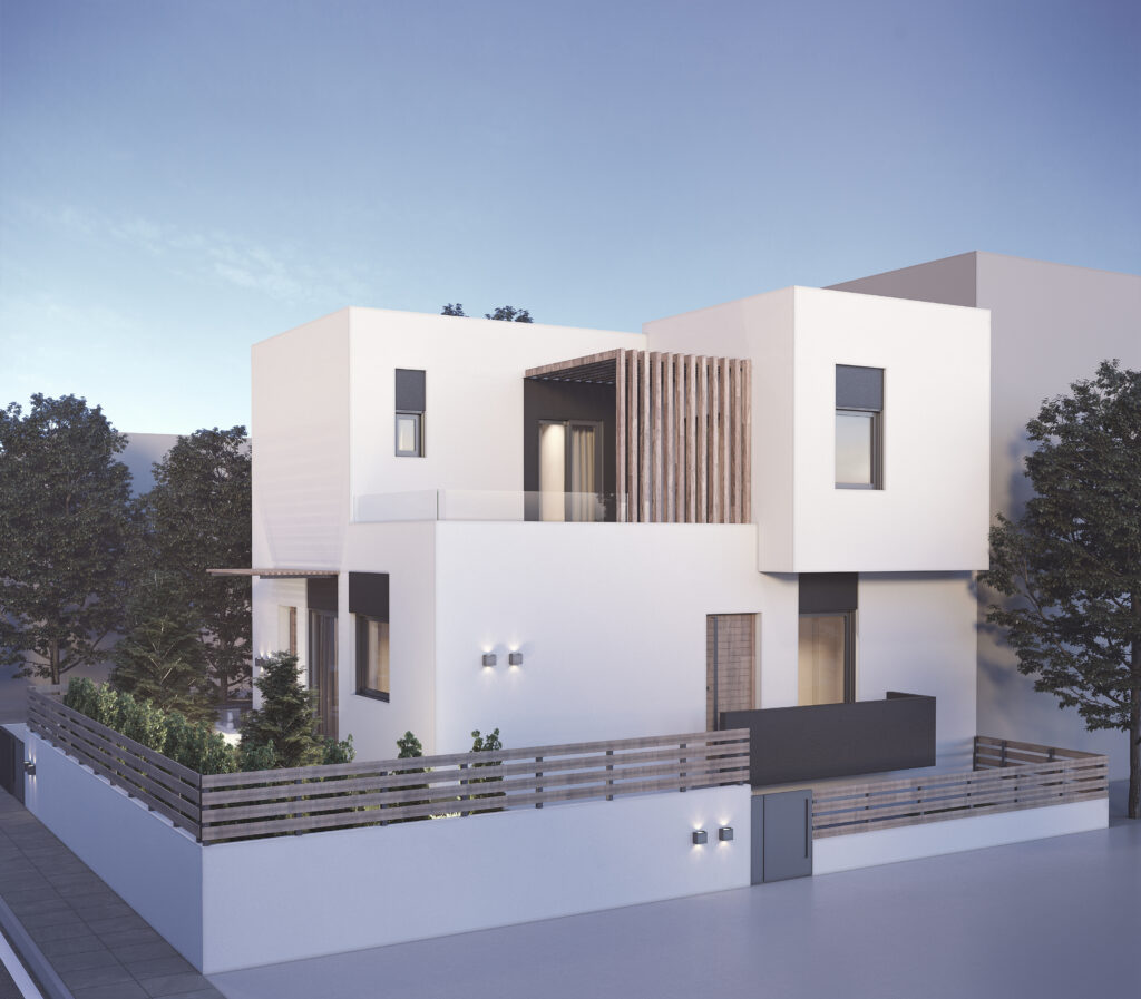 Διώροφη κατοικία με υπόγειο, στέγη και περίφραξη