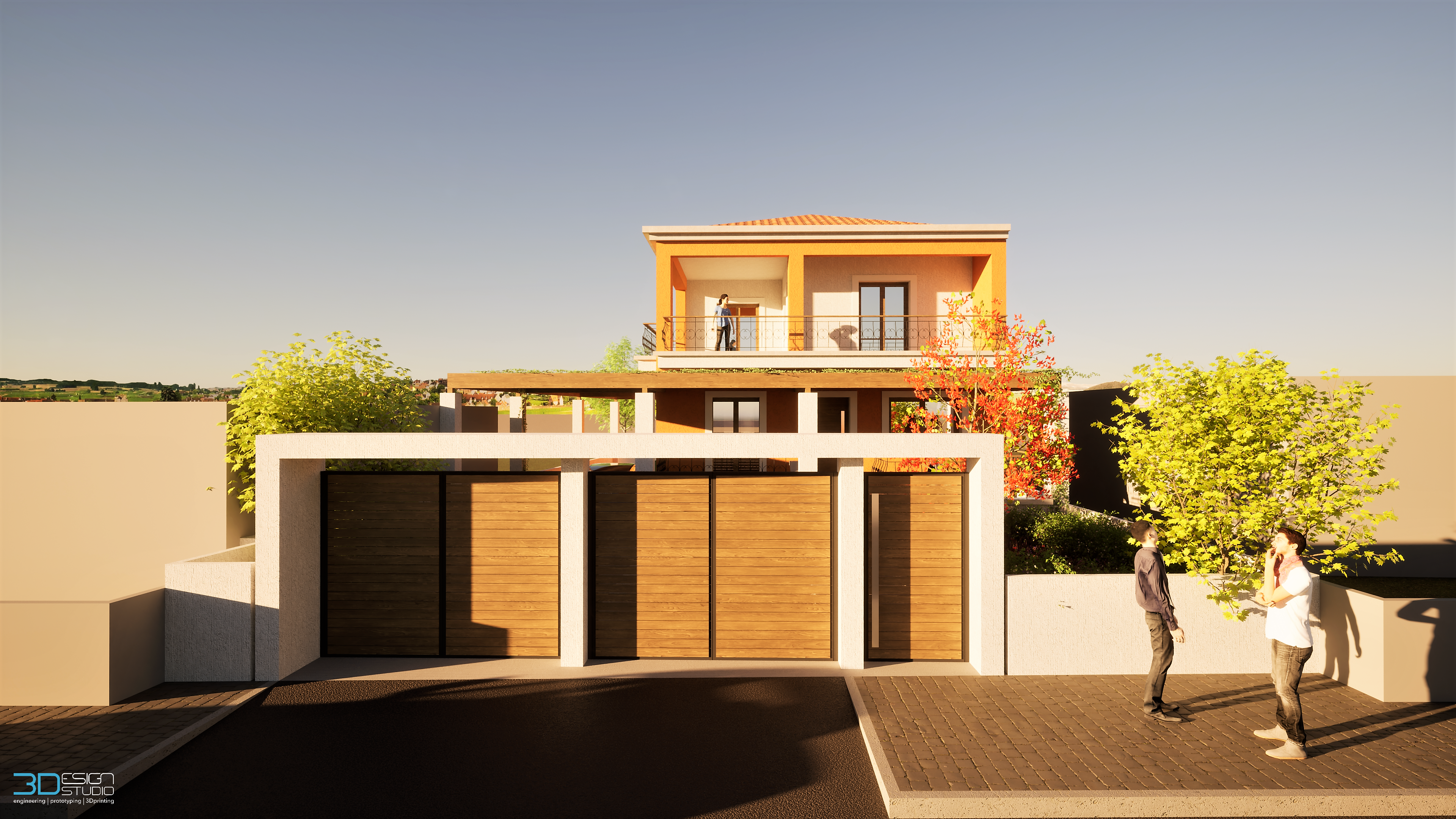 Διώροφη κατοικία με υπόγειο, στέγη και περίφραξη